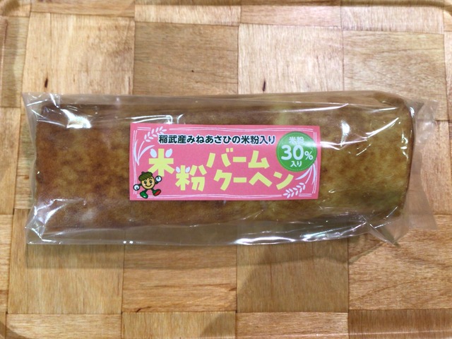 稲武のお米「ミネアサヒ」を使用したバームクーヘンです。 米粉が30%含まれています。