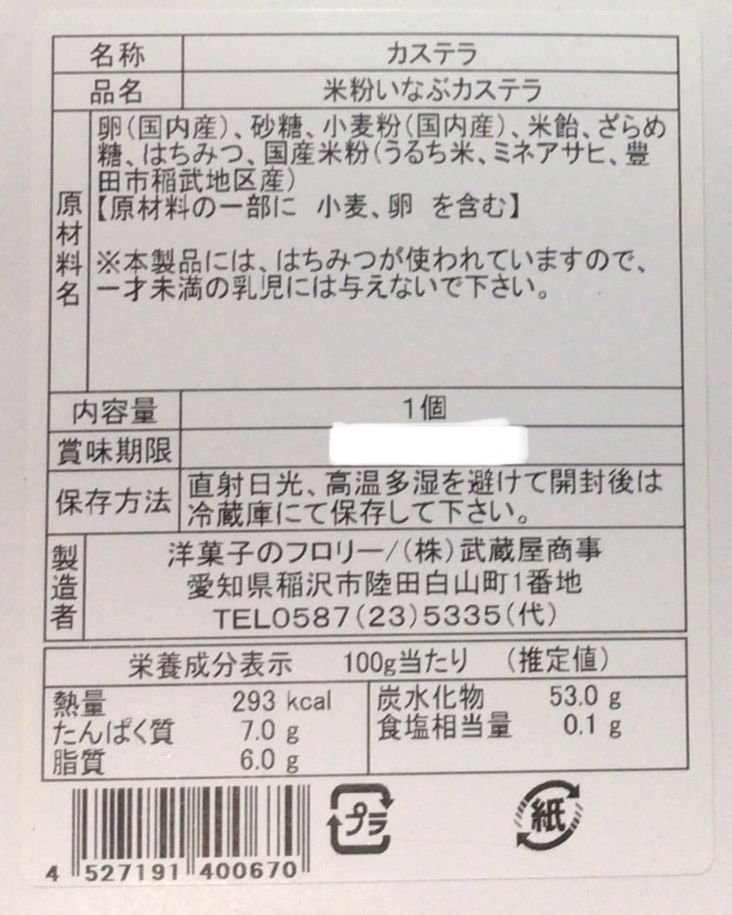 ※本製品には、はちみつが使われていますので、1才未満の乳児には与えないで下さい